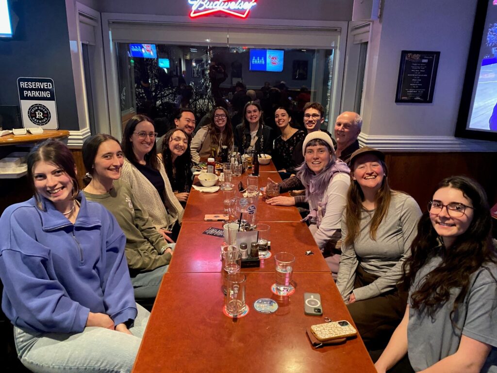 On March 12, Karl gave his career ‘wind-up’ presentation as part of the Environmental Science Seminar. The talk summarized roughly 20 years of research on the movement ecology of the Western Rattlesnake, work conducted largely on the backs of graduate and undergraduate students. Following the presentation, a hefty group of the current research team made their way to Duffy’s Neighbourhood Pub for beverages, food and conversation.